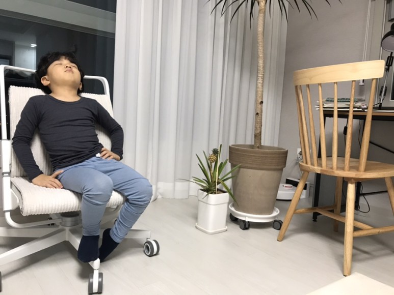 자기 의자에 꽤나 만족스러운 표정입니다.