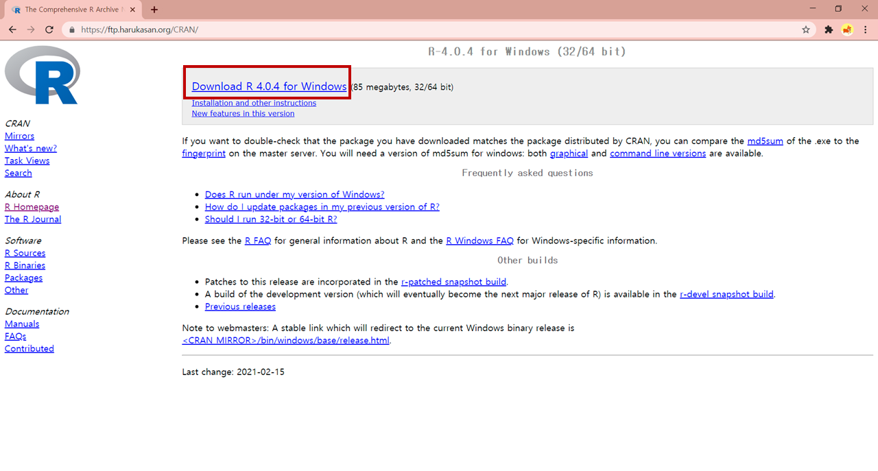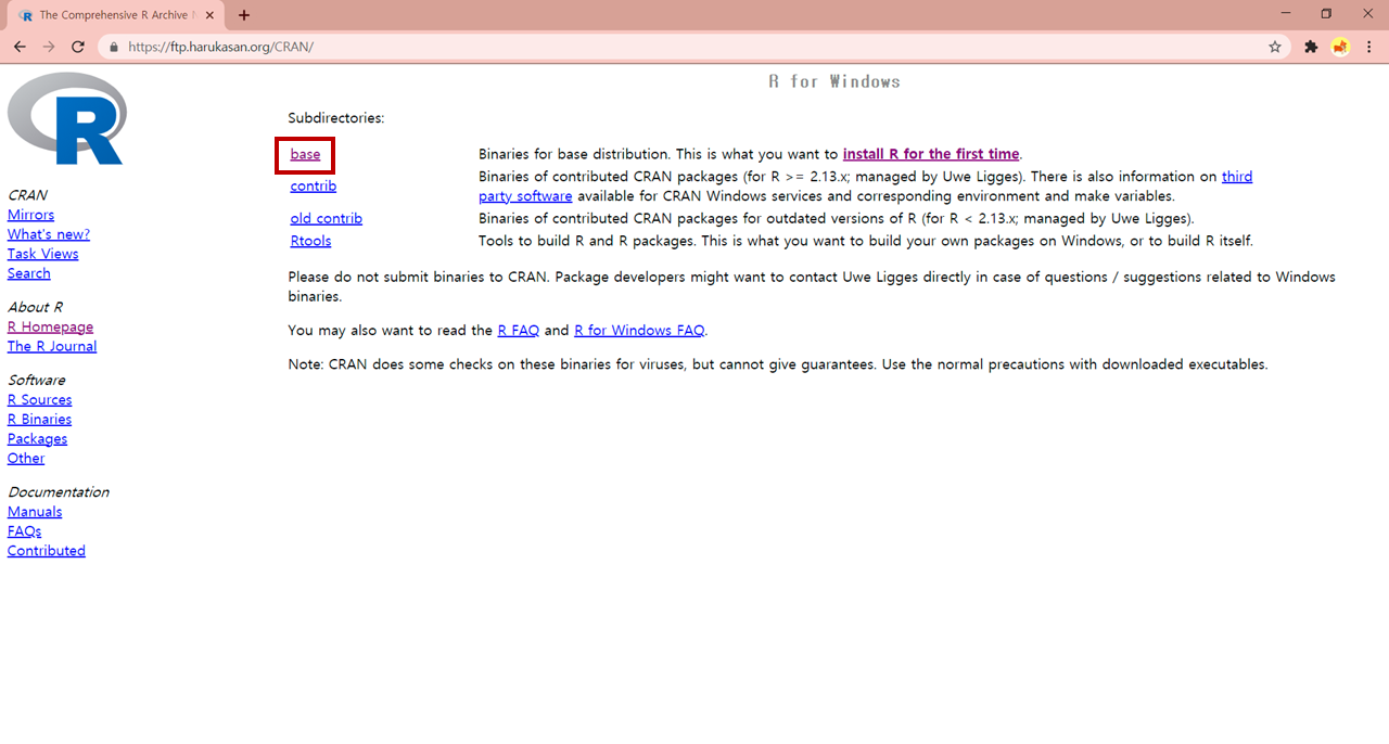 4. Download R for Windows 클릭 > base 클릭
