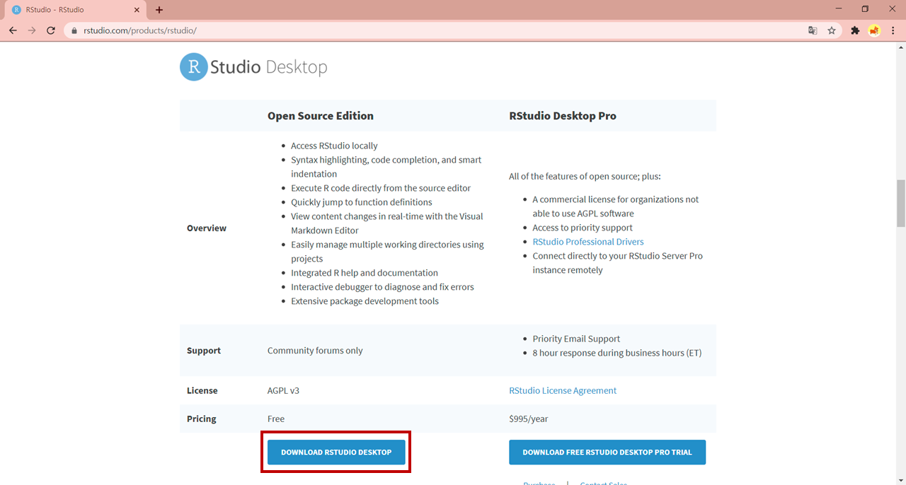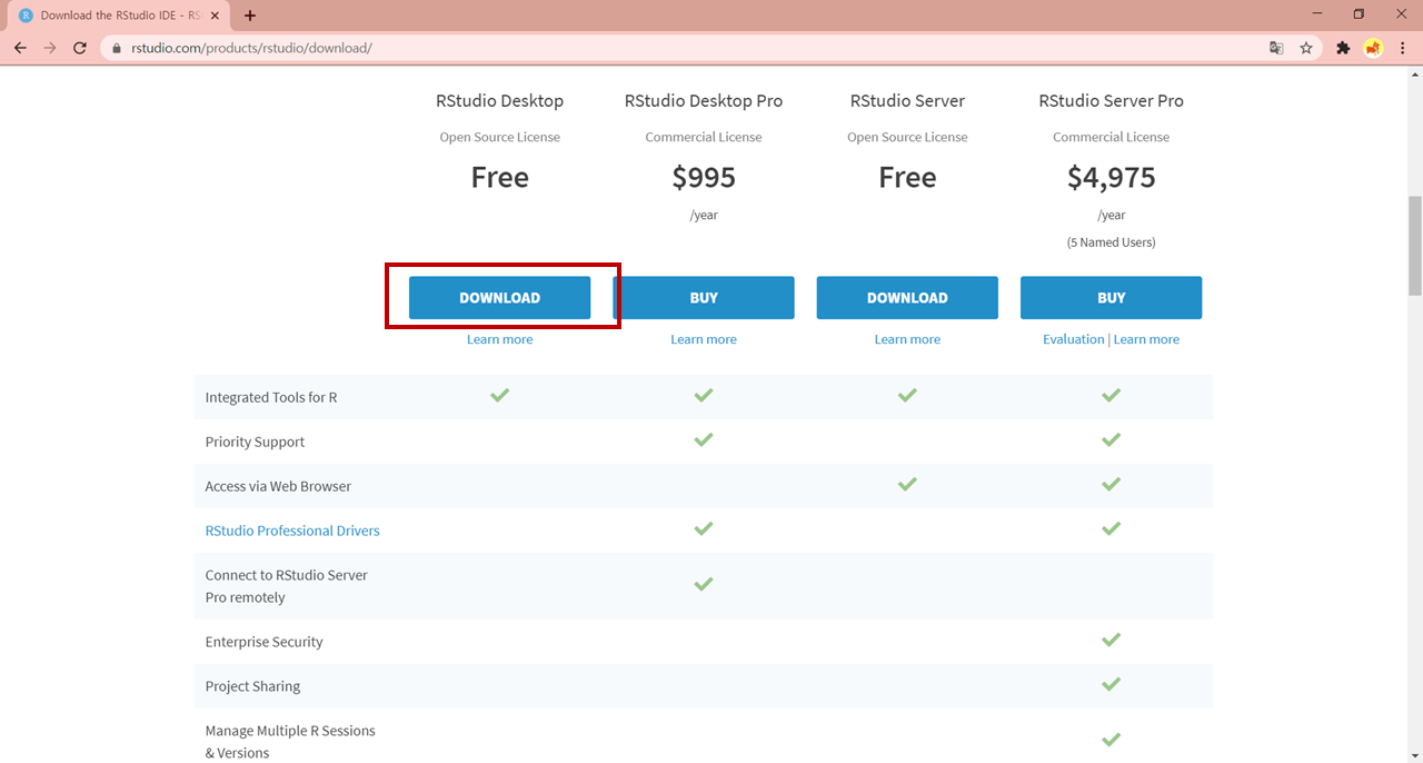 1. R Studio 공식 홈페이지에 들어간다.