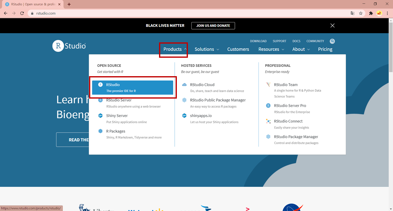 2. Products > RStudio 클릭