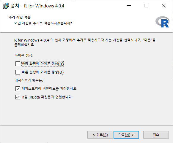 - R i386은 32비트, R x64은 64비트