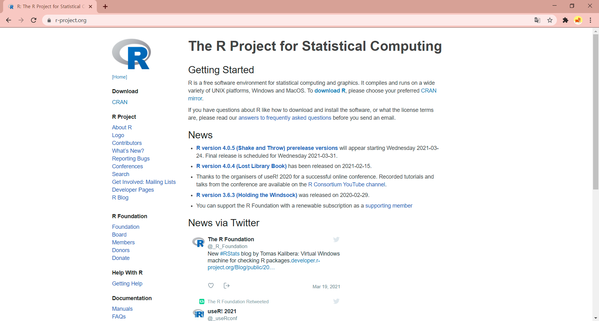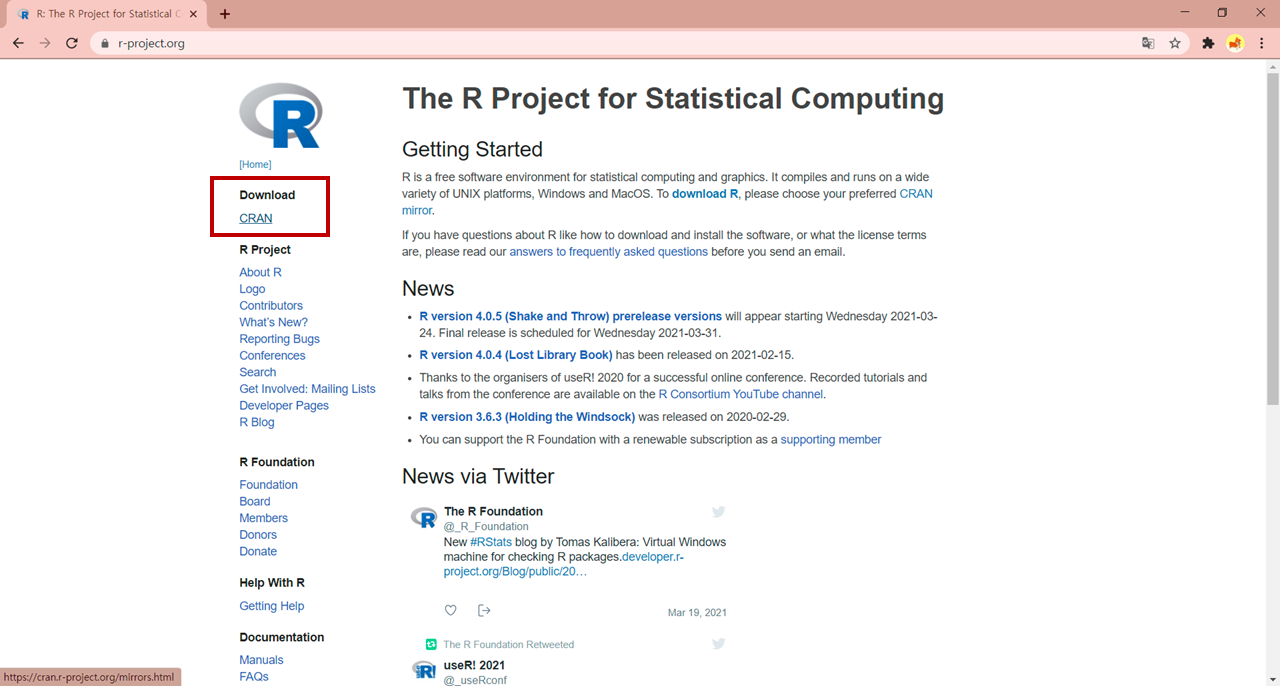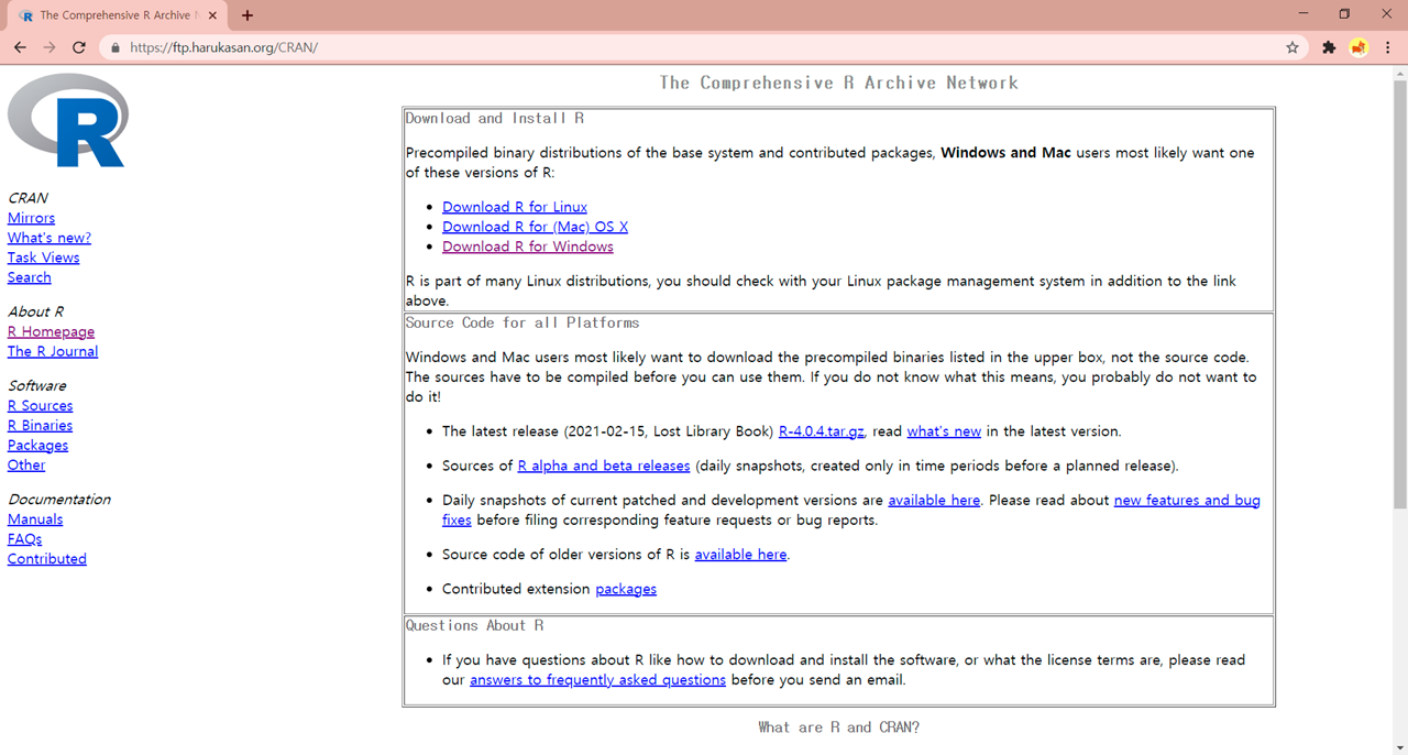 1. R 공식 홈페이지에 들어간다.