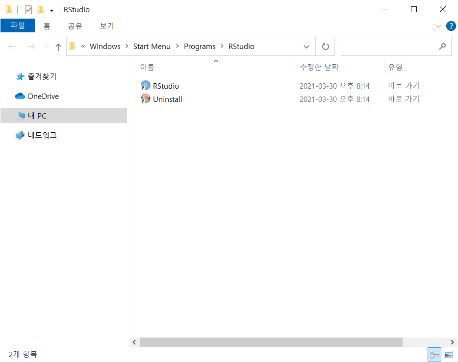 - Widow 에서 검색 혹은 설치한 곳에 가서 R Studio 실행