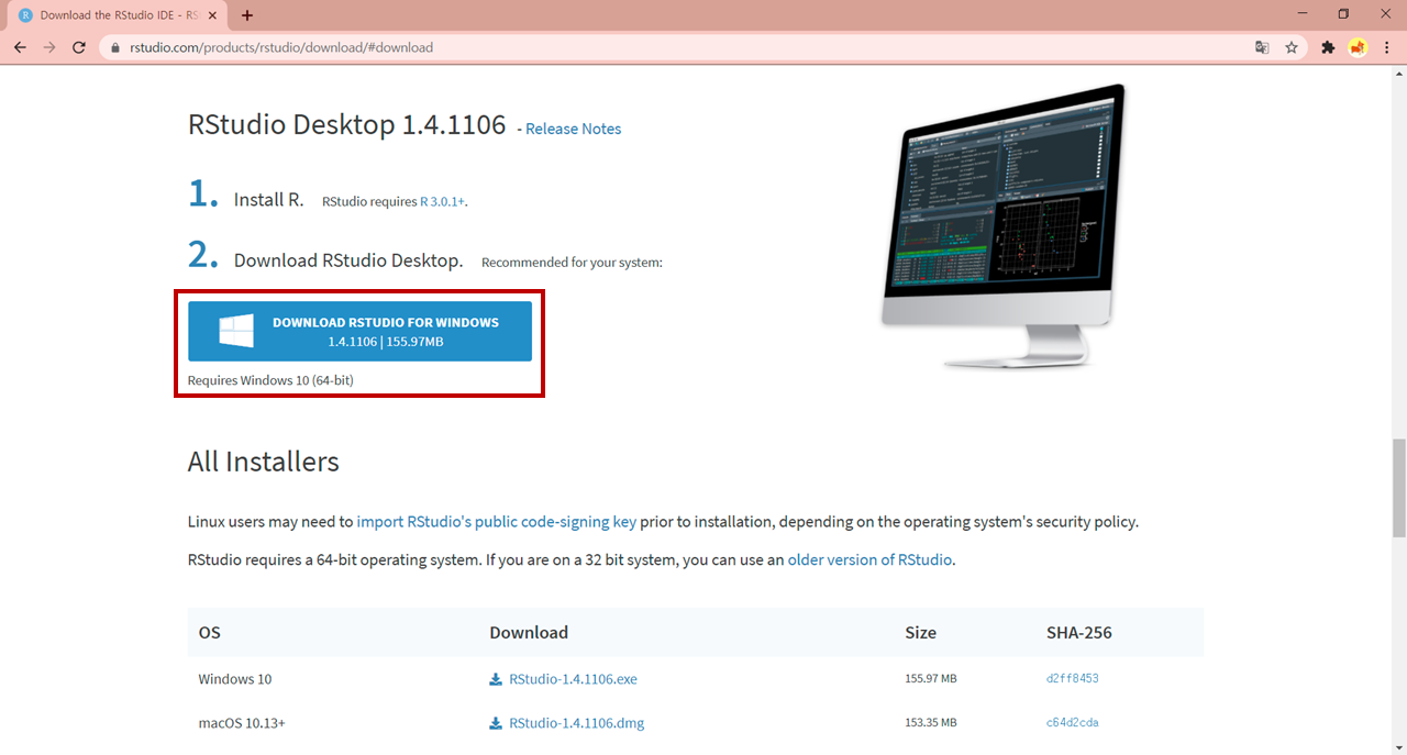 3. 스크롤 조금 내려서 RStudio Desktop 선택