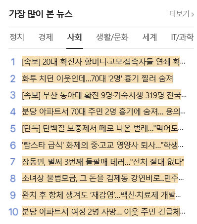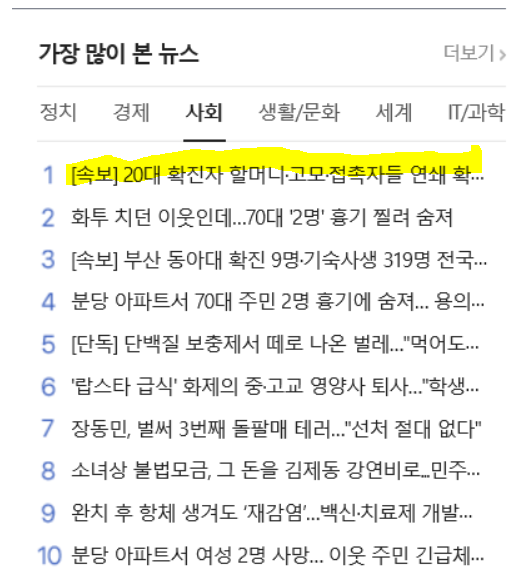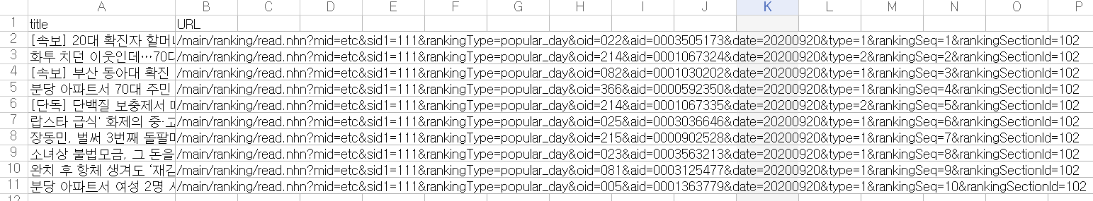 위의 사회 뉴스면 10개의 뉴스 제목과 URL을 스크래핑 후 엑셀로 저장하는 실습을 진행해보겠습니다.